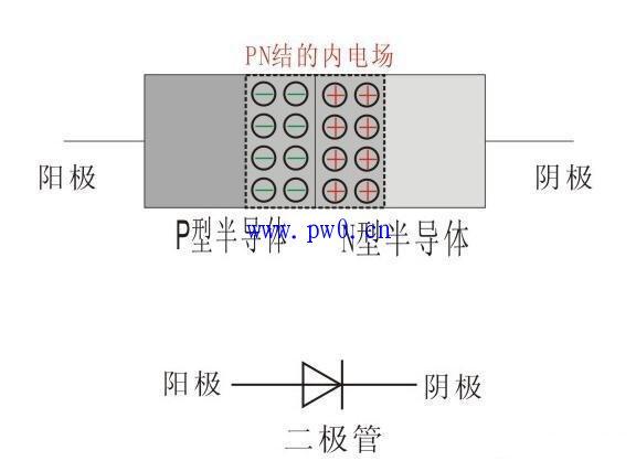 晶体二极管为一个由p型半导体和n型半导体形成的p-n结,在其界面处两侧形成空间电荷层,并建有自建电常当不存在外加电压时,由于p-n结两边载流子浓度差引起的扩散电流和自建电场引起的漂移电流相等而处于电平衡状态。