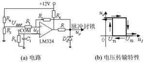 为了使电源在恶劣环境及突发故障下能够安全可靠的工作,必须设计保护电路,比如防浪涌的软启动,防过压、欠压、过热、过流、短路等保护电路。本保护电路主要是完成系统的过流保护功能,它利用霍尔传感器检测电压电流信号,通过由LM324设计的滞回电压比较器封锁输出脉冲。