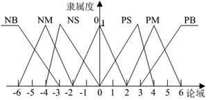 电压偏差的基本论域为[-60,60],偏差变化的基本论域为[-6,6],输出步进电动机步数的基本论域为[-32,32],步进电动机步数为负数表示电动机反转,油门开度变小。