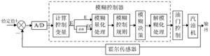 控制电路以单片机为中心,为使输出电压在负载变化时能够稳定,首先在降压环节中引入了传统的PID控制算法,将降压环节输出电压稳定在350V,以使逆变器输出稳定的220V/50Hz的交流电。当降压环节不能使输出电压达到稳定时,则根据反馈电压与给定电压的偏差及偏差的变化率作为模糊控制器的输入量进行调节,得到合适的油门开度,即可实现输出电压的稳定和良好的动态性能。