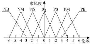 输入输出的隶属度函数通常有三角型、梯型和高斯型等几种形式。其中,高斯型隶属度函数是描述模糊子集比较合理的形式,但它的计算比较复杂,计算机实现困难。根据系统特点,本方案采用三角形隶属度函数,它的形状仅与直线斜率有关,适合于***调整的自适应模糊控制系统。输入变量和输出变量的隶属度函数曲线分别如图5和图6所示。
