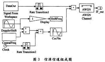 考虑到加解密迭代基本不牵涉误码率问题,当以提高系统误码率的思想进行算法仿真时,去掉加解密环节;考虑到射频的影响主要在于多普勒效应和射频器件的热噪声,故将其影响直接折算到中频上,这样可有效避免射频带来的高采样率问题。