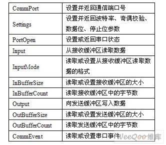 表1 MSComm 控件的主要属性及功能