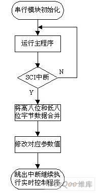DSP的SCI模块使用中断来接收PC机所传送来的参数,供控制算法主程序调用,DSP中串行数据接收流程图如图3所示。
