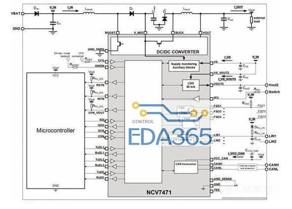 开关解决方案通过将输入电源断开到控制器或电子子系统,为负载突降瞬态提供保护。这是指定的脉冲持续时间完成,然后重新连接,稳定条件恢复正常时重启。但是,这种解决方案通常需要十几个组件,这增加了总成本和占用宝贵的 PCB 布局。