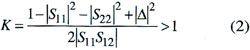 稳定性是LNA电路必须考虑的,放大器的稳定性是指对振荡的抑制水平,必须保证放大器的稳定性,以避免可能出现的自激。在晶体管放人器的二端口网络中,它的两个端口分别接信号源和负载,有了双端口刚路的S参数,可以方便地计算放大器的稳定系数K,稳定性判据如下: