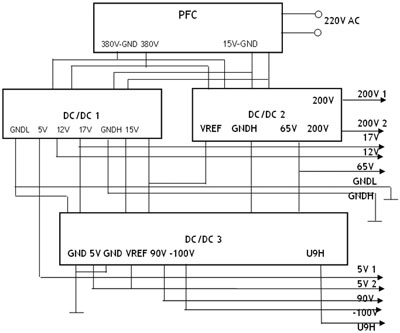 电源作为PDP的重要组成部分,要求效率高、体积小、能够提供较大的瞬态输出功率,并且具有保护功能和不同输出电压按顺序启动的功能。