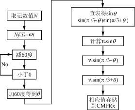 TI公司的TMS320LF2407ADSP是面向电力电子控制领域的,它具有两个事件管理器模块EVA和EVB,能够实现PWM对称和非对称波形;外部引脚PDPINTx快速封锁PWM通道;可编程的死区控制;3个捕获单元;片内光电编码器接口电路;16通道的A/D转换。另外,它还有串行通信接口(SCI),16位的串行外设接口模块(SPI)和控制器局域网络(CAN)2.0B模块。LF2407A可以很好地实现电力电子领域的控制。DSP实现SPWM控制三电平变换器的控制框图见图3。对称的规则采样PWM法比较简单,适合于数字控制的实现,它的原理是在三角载波的峰点(谷点)的时刻采样正弦波调制信号而形成的波形,采样周期Ts为三角载波的周期。用DSP实现SPWM控制的过程中,主要是计算各个载波周期内的开关时间。图4是计算载波周期内开关时间的中断程序流程图。中断程序主要就是计算第N个载波周期内的开关的时间,其中v0为正弦波的幅值。表1是DSP的信号与开关管对应表。表2是各个扇区内CMPRx的值表。