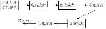 (1) 振动信号处理电路,它主要包括振动信号预处理电路及共振解调处理电路部分,如图2所示: