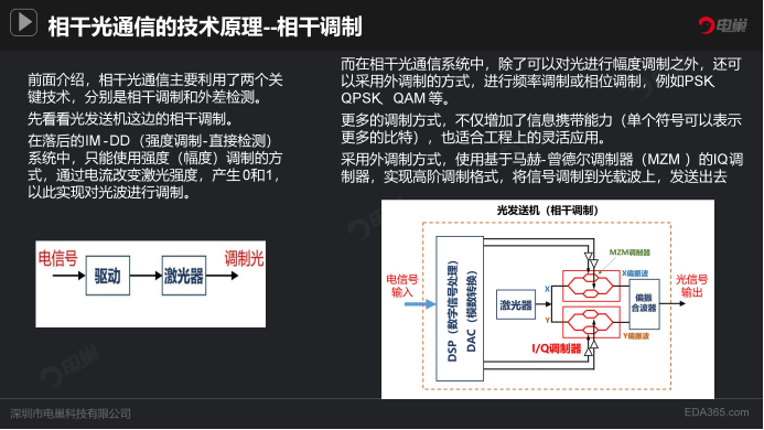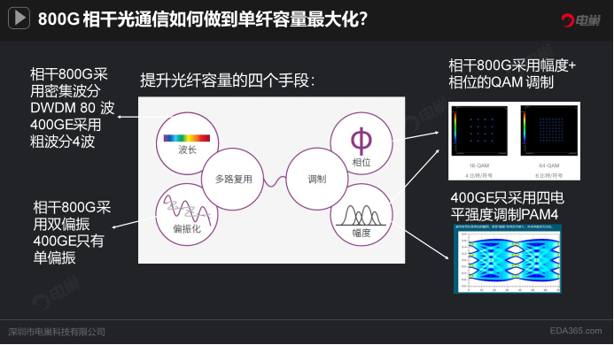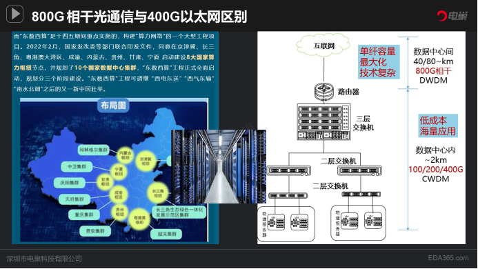 前一段时间,电巢的一个直播《兴森大求真—400G光模块PCB解决方案”》赢得的众多观众的欢迎,兴森讲的400G光模块主要的应用场景是数据中心内部互联,主要覆盖2公里以内的距离,采用的技术是相对简单而低成本的“直调+直检”技术,而本次直播将介绍比400G直调直检光模块更复杂的技术:800G相干光技术,这个技术不仅能提升数倍的光传输容量,而且能提升数十倍的传输距离,主要是应用在各个城市数据中心之间的长途传输,传输距离从80公里到数千公里。