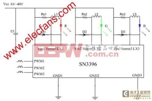 LED驱动器SN3396在真彩色LED射灯中的应用