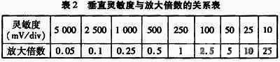 垂直分辨率的高低直接影响数字示波器对波形细节的显示,垂直分辨率越高,则示波器上的信号波形细节越小,它取决于a/d转换精度和tft的显示分辨率。本文设计中取最大采样输入电压为2 vpp,垂直刻度为8格,共256个像素点,因此垂直精度为0.25 v/格。共设计9个灵敏度档位,每档灵敏度与程控放大倍数的关系如表2所示。