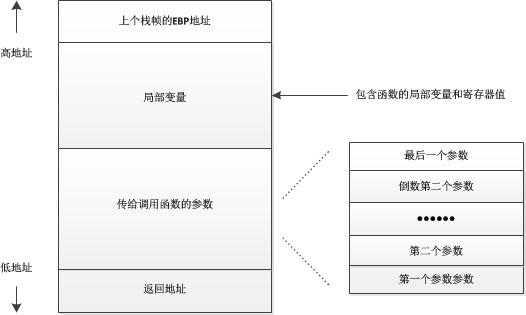 好的,简单了解了内存地址空间的栈后,我们还需要简单了解一下EBP和ESP这两个寄存器,EBP是用保存栈低地址的,而ESP用于保存栈顶地址,而每一次函数调用会涉及到一个栈帧,