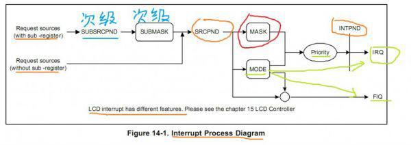 rINTMOD=0x0; //所有中断为IRQ中断 ,INITMOD为中断模式寄存器,有FIQ快速中断模式,当INTMOD被置1时为FIQ模式,否则为IRQ模式,默认为IRQ模式。