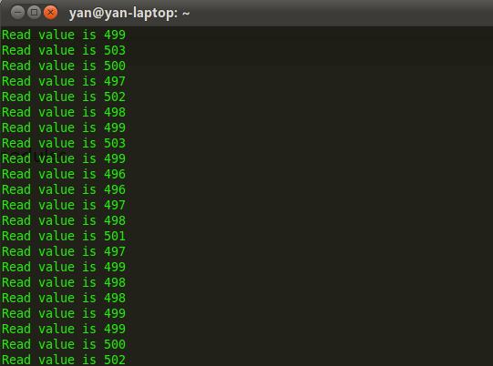 可以看出,调节ad转换器上的旋钮,看到AD转换值的变化,说明驱动工作正常。