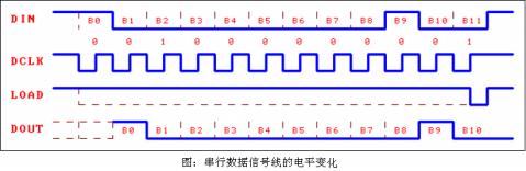 需要注意地,数据是一位一位的往DIN输送,把12位数据全输完,刚好要12次。(附:代码)
