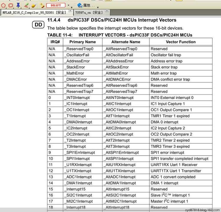 如果我们写自己的终端服务程序,那么将void __attribute__((__interrupt__,__auto_psv__))不改动只修改后面的即可,根据XC编译器的中断向量表来修改: