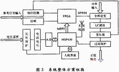 该系统以MCU-FPGA为构架,实现了风光逆变并网系统。系统充分利用了数字系统的计算精度,将逆变波形与外网市电的相位差控制在2°以内,并且通过最大功率追踪,让太阳能电池板或者风力发电机的发电效率达到最大。该系统成本低,体积小,且人性化设计,方便今后直接大批量投入市场使用。
