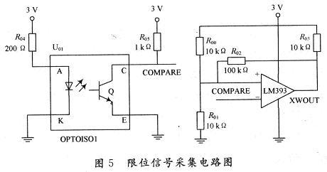 采用光电耦合器与电压比较器电路组成的微机步进电机限位电路,其电路图如图5所示。