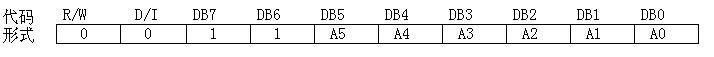 此指令的作用是将A5~A0送入Y地址计数器,作为DDRAM的Y地址指针。在对DDRA M进行读写操作后,Y地址指针自动加1,指向下一个DDRAM单元。
