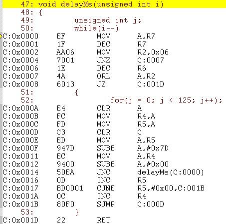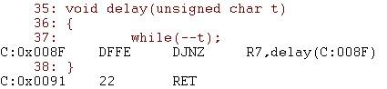 经过以上分析,可见用C语言来做延时并不是不太准确,只是不容易做到非常准确而已,若有一句语句变了,延时时间很可能会不同,因为编译程序生成的汇编指令很可能不同。