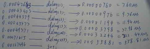 对于delayMs(2), 需时9T+13T+124×10T+7T+12T = 9T+13T+1240T+7T+12T =1281T =1409.1us.