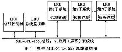 请看一下数据传输路径,即图1中的MIL-STD-1553总线结构。MIL-STD-1553是一种定义数据总线的电子和协议特点的军用标准。作为一种在军用和商用领域广泛应用超过25年之久的总线,并且符合MIL-STD-1553标准,它能以1 Mbit/s的速率高度精确、极为可靠地传输数据。