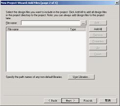建立工程后,可以使用“Assignments”菜单的“Settings”对话框中的“Add/Remove”页,在工程中添加和删除设计和其他文件。在执行QuartusIIAnalysisSynthesis期间,QuartusII软件将按“Add/Remove”页中显示的顺序处理文件。