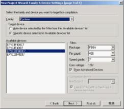 图5.7添加设计文件图5.8选择目标器件(FPGA型号)