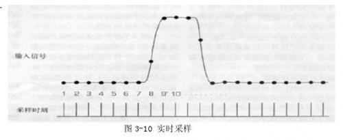 实时采样是一种最基本的采样方式。由奈奎斯特定理知,采样频率必须大于信号最高频率的两倍,才能不失真的恢复原信号。但实际上以接近奈奎斯特判定频率两倍的速率去采样的话是很难获得测量精度的,所以通常是以信号频率的5倍甚至10倍的频率去采样。实时采样的原理图如图3-10.实时采样是