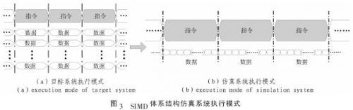 在SIMD体系结构仿真系统中,必须在逻辑上保持这种完全同步的执行模式。本文采用的方式是,一条指令流出之后,让它在指令流水线中保持n个时钟周期(可以在连续的n个时钟内都发射同一条指令),VAU在这n个周期内分别对各处理单元对应的数据进行处理。若将n个时钟周期看作系统的工作周期,则n个数据是在同一工作周期内被处理,如图3(b)所示。这样则在逻辑上保持SIMD的执行模式。