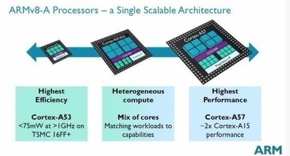ARM通过big.LITTLE向移动设备推出了异构计算。这意味着处理器中的核可以有不同的性能和功耗。当设备正常运行时,使用低功耗核,而当你运行一款复杂的游戏是,使用的是高性能的核。