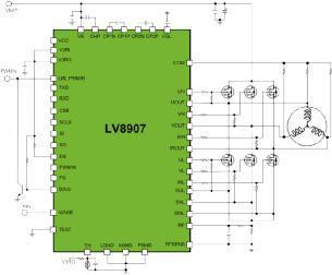 除了传统的BLDC和步进应用,安森美半导体还专注于汽车BLDC应用领域,如各种泵、自动空调(HVAC)风机、座椅风扇、散热器风扇、LED大灯风扇等,可针对不同的功率级别提供相应的BLDC方案。如适用于油泵、水泵、散热器风扇、HVAC等应用的无传感器150度3相BLDC 预驱动器LV8907,内置门极驱动、LIN收发器和低压降稳压器(LDO),将占板面积减至最小,配合外部功率MOSFET可实现不同的功率等级输出。该器件通过了AEC-Q100认证,结温最高达175 ⁰C,无需软件,集成逐周期限流、过流保护、过压/欠压保护、过温保护、堵转保护等丰富的保护特性,可靠性极高。此外,LV8907可灵活地通过OTP设置实现单独的工作模式和通过SPI进行实时控制。