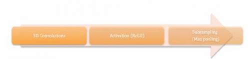 AlexNet中的卷积层负责三大任务,如图2所示:3D卷积;使用校正线性单元(ReLu)实现激活函数;子采样(最大池化)。3D卷积可用以下公式表示:
