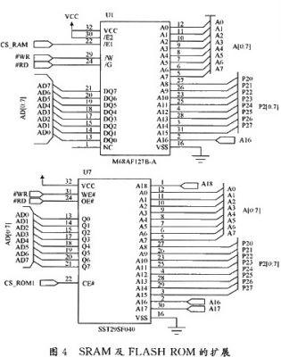 实际上,P2口引入CPLD,就P89C669的23 b地址线而言,用来地址译码和少量的控制信号等主要是利用最高的几位,在本设计中,由于SST29SF040用到地址线A0~A18,所以CPLD的地址译码处理只能是利用剩下的A19~A22,这将在下文的CPLD的译码单元可以看到。