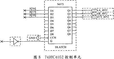 如果不是对SST29SF040进行读写,则高位地址线A16~A18仍然可以利用,这里将其作为74HC4052的3个输入控制线A,B,INH,即图8中的A_4052,B_4052,CS_4052。