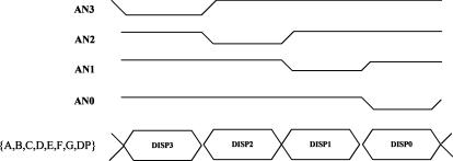 动态扫描显示利用了时分的原理和人的视觉暂留效应。例如,一个4位动态扫描数码显示器的显示周期可划分为4个阶段。