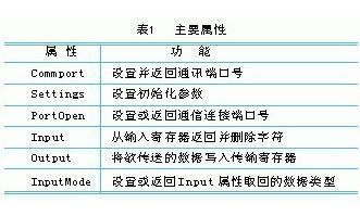 mscomm控件的主要属性如表1