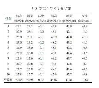 从以上结果可以看出:经过补偿和修正以后,使温度传感器测量数据的温度精度小于等于0.2℃,湿度精度小于1.0%RH,达到了系统的设计要求,满足了温度精度为±0.3℃和湿度精度±2.0%RH的课题测量要求。
