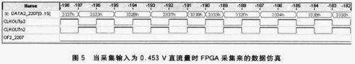 采用QuartusII软件中的调试工具SignalTapII逻辑分析仪进行仿真验证。当采集输入为0.453 V直流量时,FPGA采集的数据仿真如图5所示。