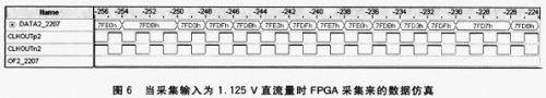 当采集输入为1.125 V直流量时,FPGA采集来的数据仿真如图6所示。同理若取其中的7FE0h,此时算得的误差约为0.8‰。