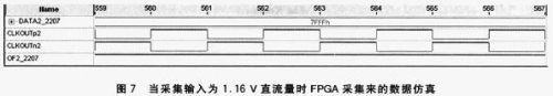 当采集输入为1.16 V直流量时FPGA采集来的数据仿真如图7所示。