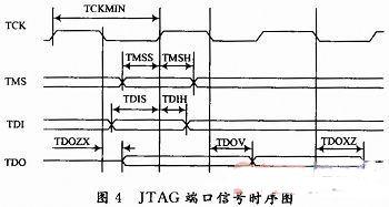 (2)JTAG接口在TCK的上升沿采样TMS和TDI信号。因此在TCK上升沿之前,TMS和TDI要具有最小分别为TMSS和TDIS的建立时间,同时在TCK下降沿之后要保持最小分别为TMSH和TDIH长的时间。