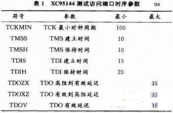 本文所用CPLD的JTAG端口时序参数要求如表1所示。
