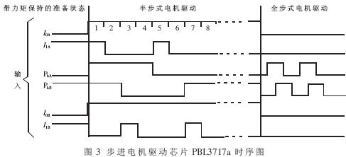 以小惯量的二相步进电机为例阐述步进电机控制模块的结构。该步进电机由两片PBL3717a芯片所驱动,其驱动时序及其控制模块如图3、图4所示。