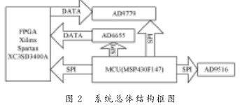 对AD9779和AD9516的寄存器配置通过其分别的SPI功能管脚实现。两种芯片的SPI都是既可以使用三线,也可以使用四线。二者的SPI片选使能和芯片复位也是分别通过MSP430的GPIO来控制。