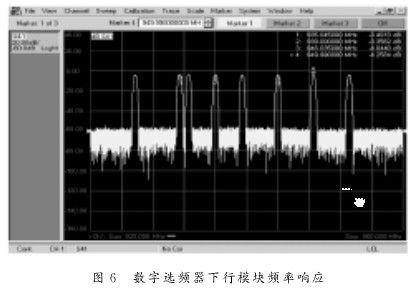 本数字选频器采用Agilent Technologies N5230A网络分析仪进行扫频测试。通过软件设定该数字选频器的下行模块参数如表1所示。